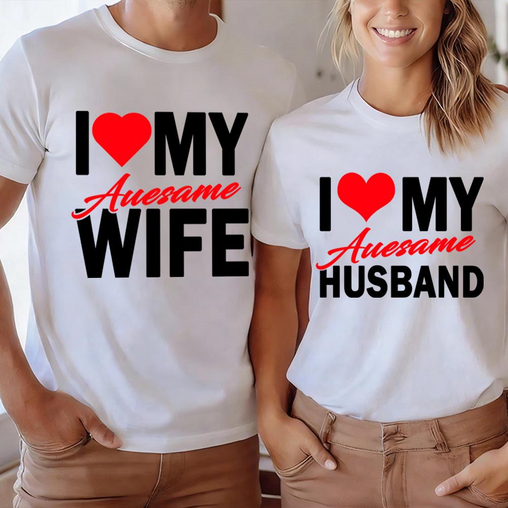 I Love My Awesome WifeHusband T Shirts Women Men Valentine Anniversary Gifts Honeymoon Couple Outfits Fashion Lover Tees