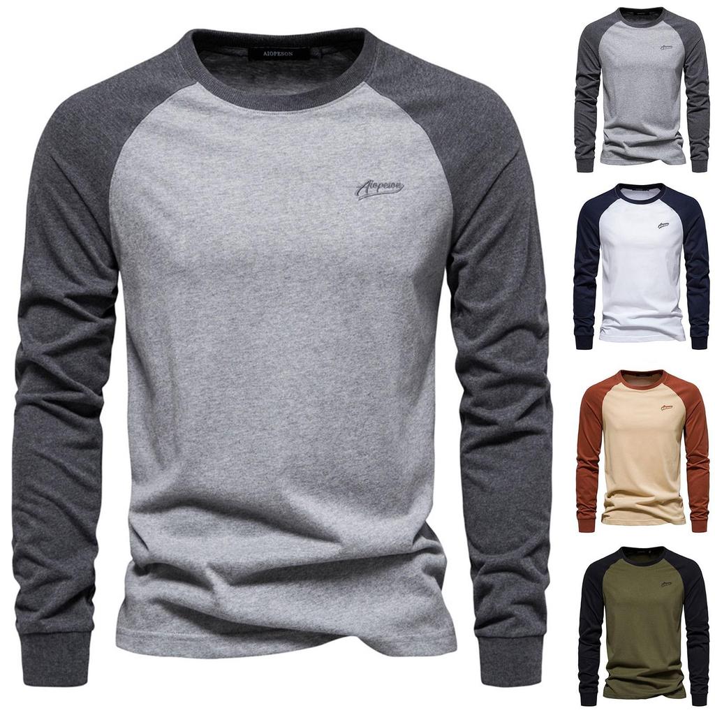 Men's Round Neck Raglan Sleeve Color Matching Long Sleeve Shirt Men's Casual Fashion Solid Color Long Sleeve Shirt