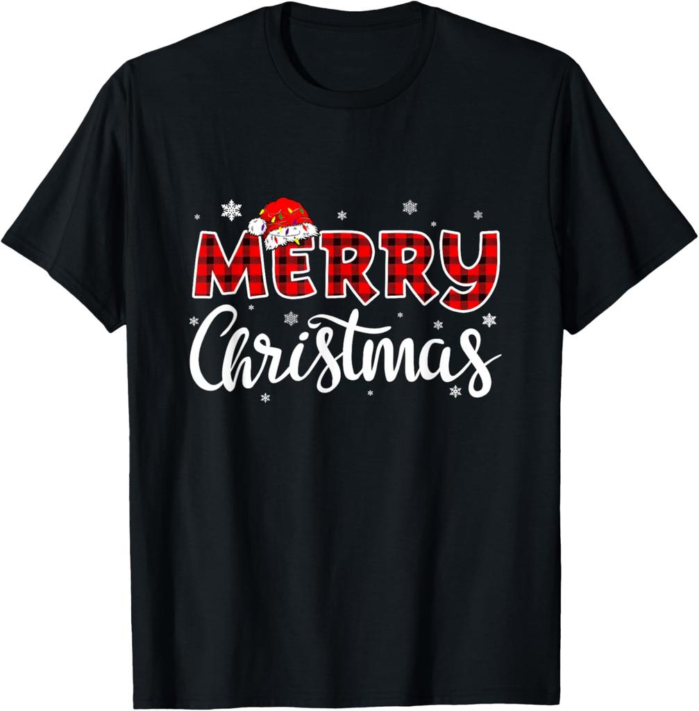 Merry Christmas Funny Christmas Hat Pair Letters Simple Design Philosophy Printed Tshirt Tops Adult Streetwear Unisex Clothes