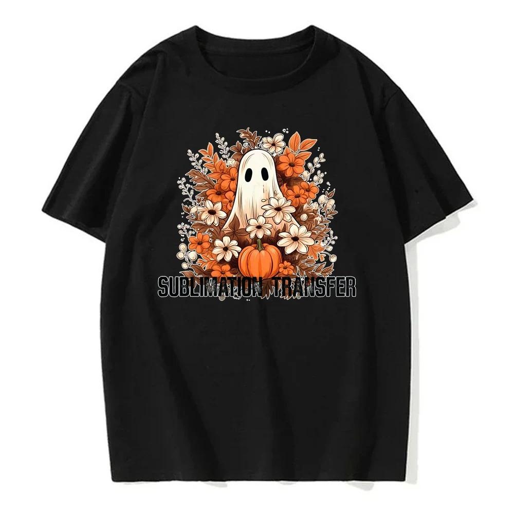 Jack Lanterns Women Ghost Pumpkin Bat Skeleton Print Round Neck Pullovers Cotton Shirt Graphic T Shirts Y2k Top Harajuku Tops