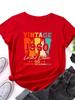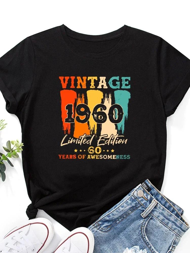 Retro 1960 Letter Printed Womens Tshirt Short Sleeved Round Neck Fashionable Versatile Womens Tshirt Top