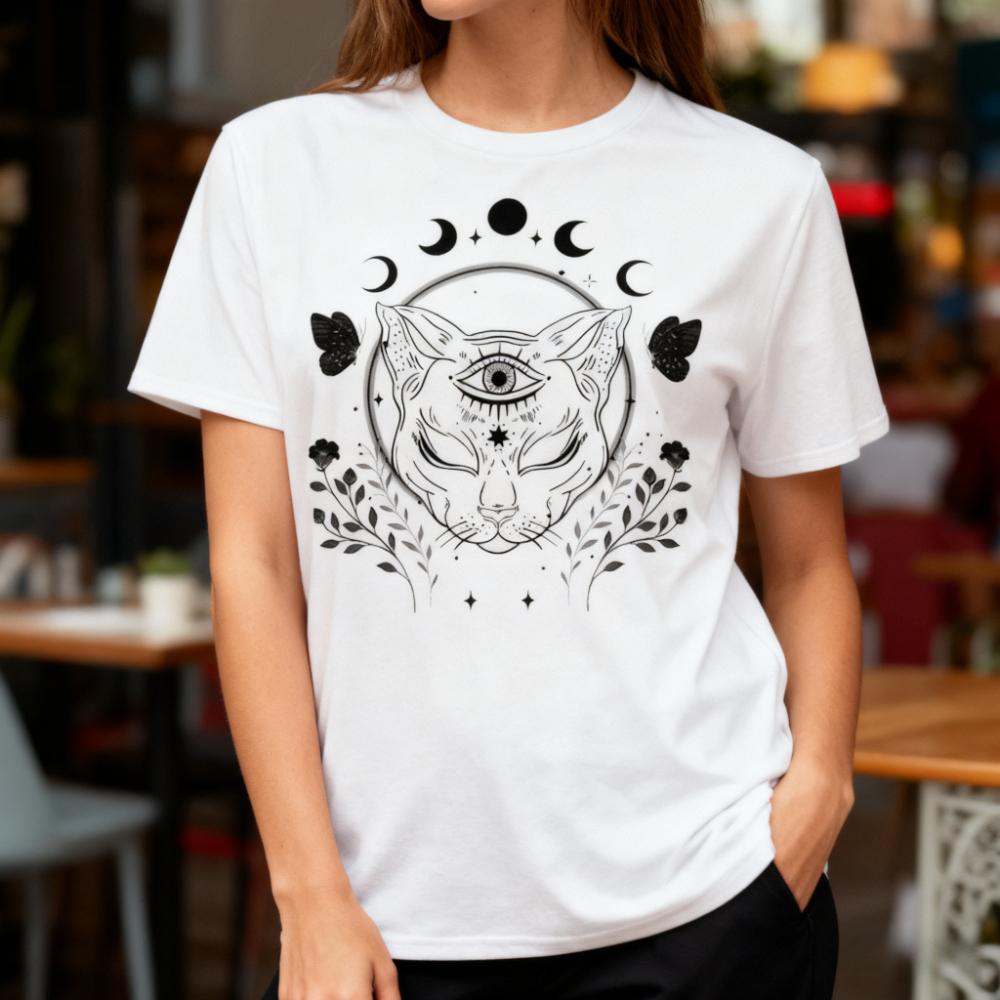 Mystical Wicca Cat TShirt Witchy Pagan Occult Clothing Graphic Printed Tshirt Women Fashion Aesthetic Short Sleeve Halloween T