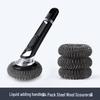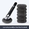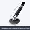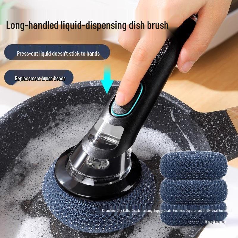 Long Handle Dishwashing Brush with Automatic Liquid Dispensing, Sponge, and Steel Wire for Pot Cleaning