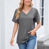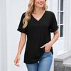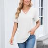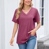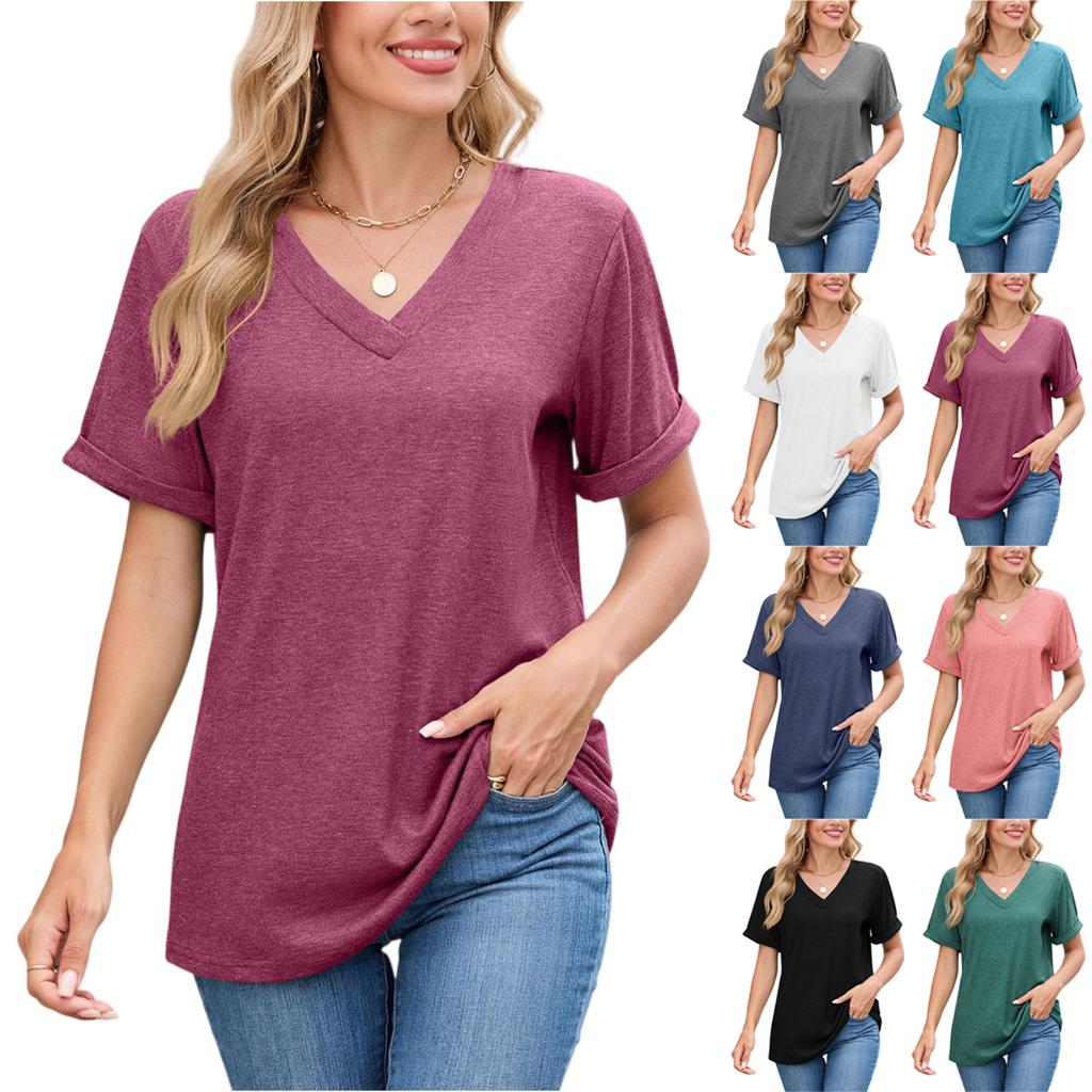 Women's Fashion Color V-neck Short Sleeved Loose Fitting Pullover T-shirt Top