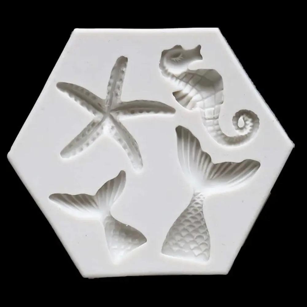 1pc-DIY Baked Large and Small Fish Tail, Sea Star, Seahorse Liquid Silicone Mold
