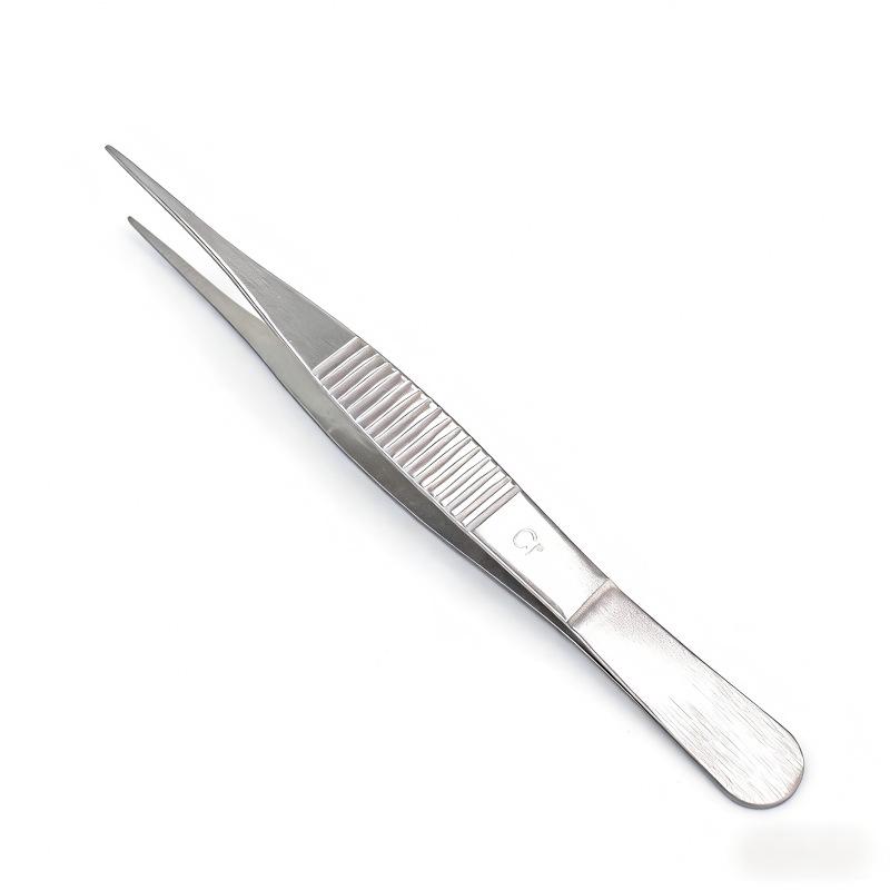 304 Stainless Steel Pointed Tip Dissection Tweezers - 125mm, Serrated for Medical and Laboratory Use