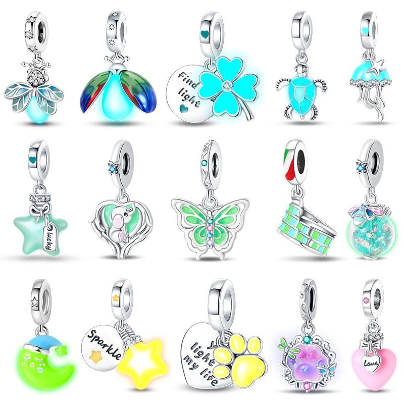 925 Silver Plated Fireflies Butterfly Stars Luminous Charms Beads Fit 3mm 925 Original Bracelets DIY Jewelry Gift
