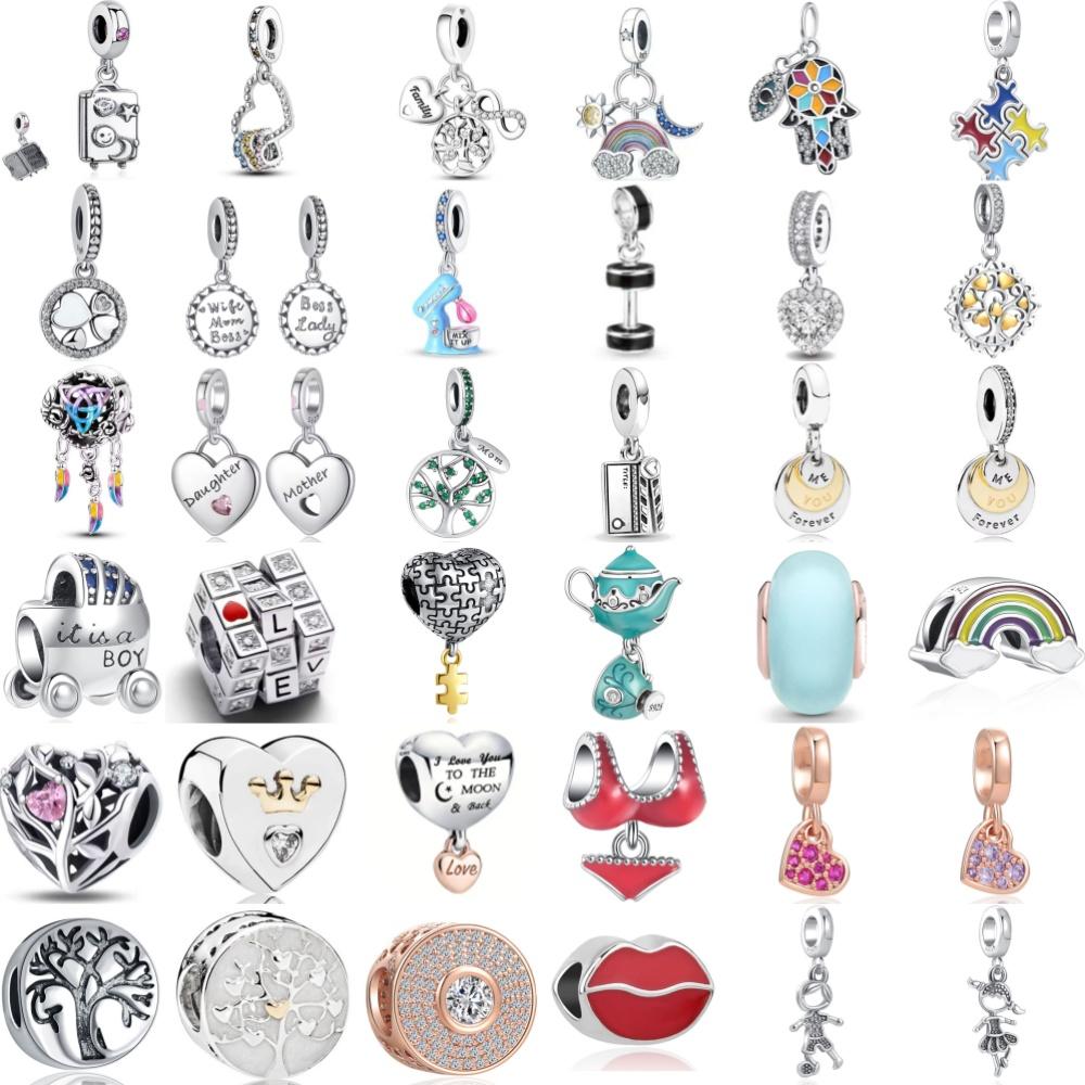New925 Silver Family Heart-Shaped Bead Boy Girl Pendant Suitable For European Original Bracelet DIY Accessories ExquisiteJewelry