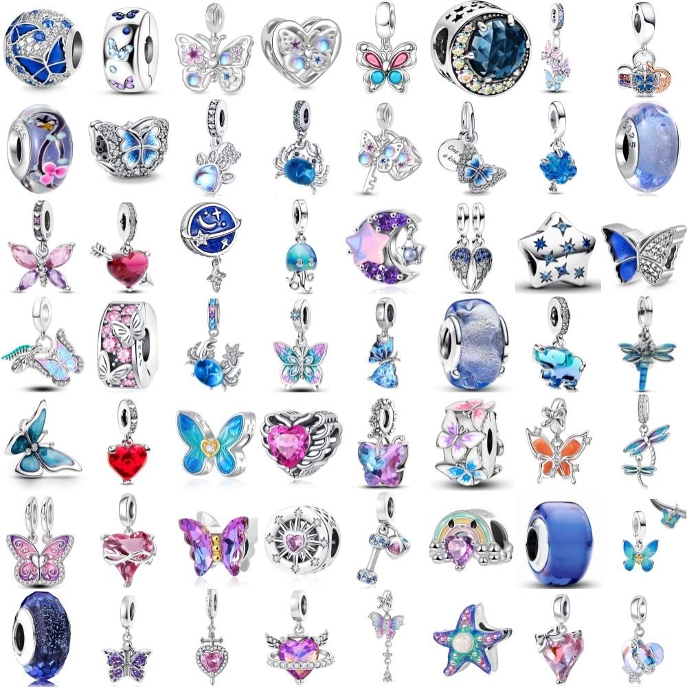 Crystal Blue Butterfly,Moon Bead Crab,Dragonfly Pendant 925 Silver European Original Bracelet DIY Accessories Exquisite Jewelry
