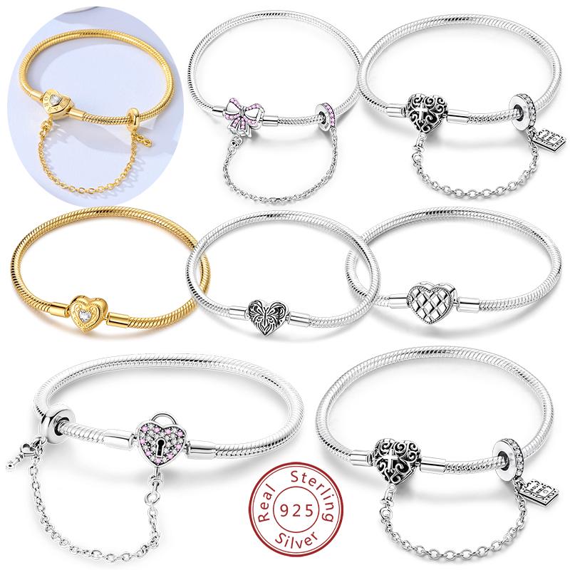 Bracelet Original 925 Silver Charm Bracelet Gold Heart Butterfly Safety Chain Bracelet 17-20CM for Women Jewelry Gifts