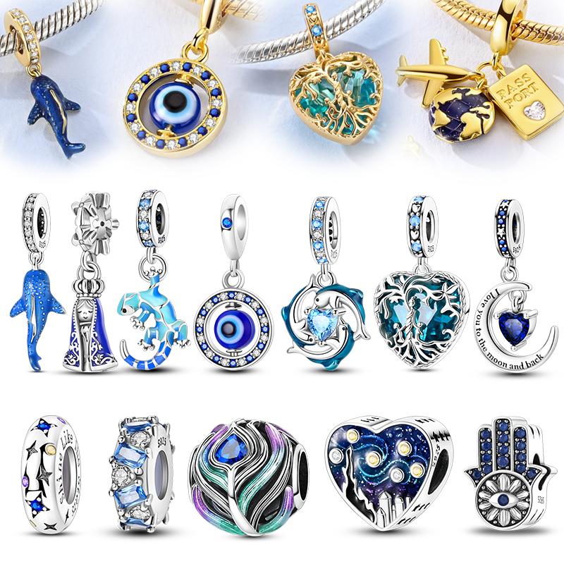 Original 925 Silver Charms Bead Gecko Dolphin Whale Shark Pendants Fit Women Girls Bracelet DIY Jewelry Gift