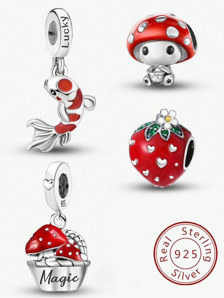 925 Silver Strawberry Koi Mushroom Charm Bead Fit Original Pan Bracelet Bangle High Quality DIY Jewelry For Womens