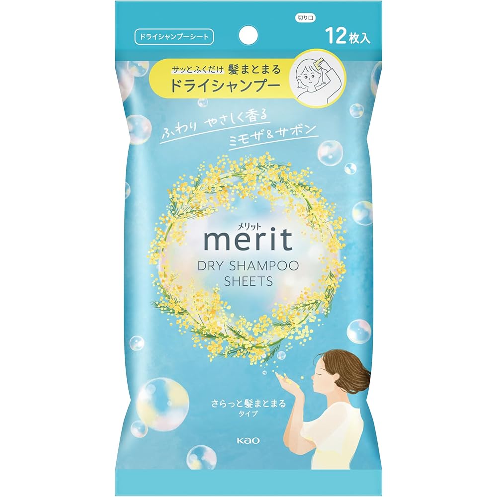 Merit Dry Sheet Mimosa Design 12 Sheets Gentle Fragrance of Mimosa & Soap Dry Shampoo