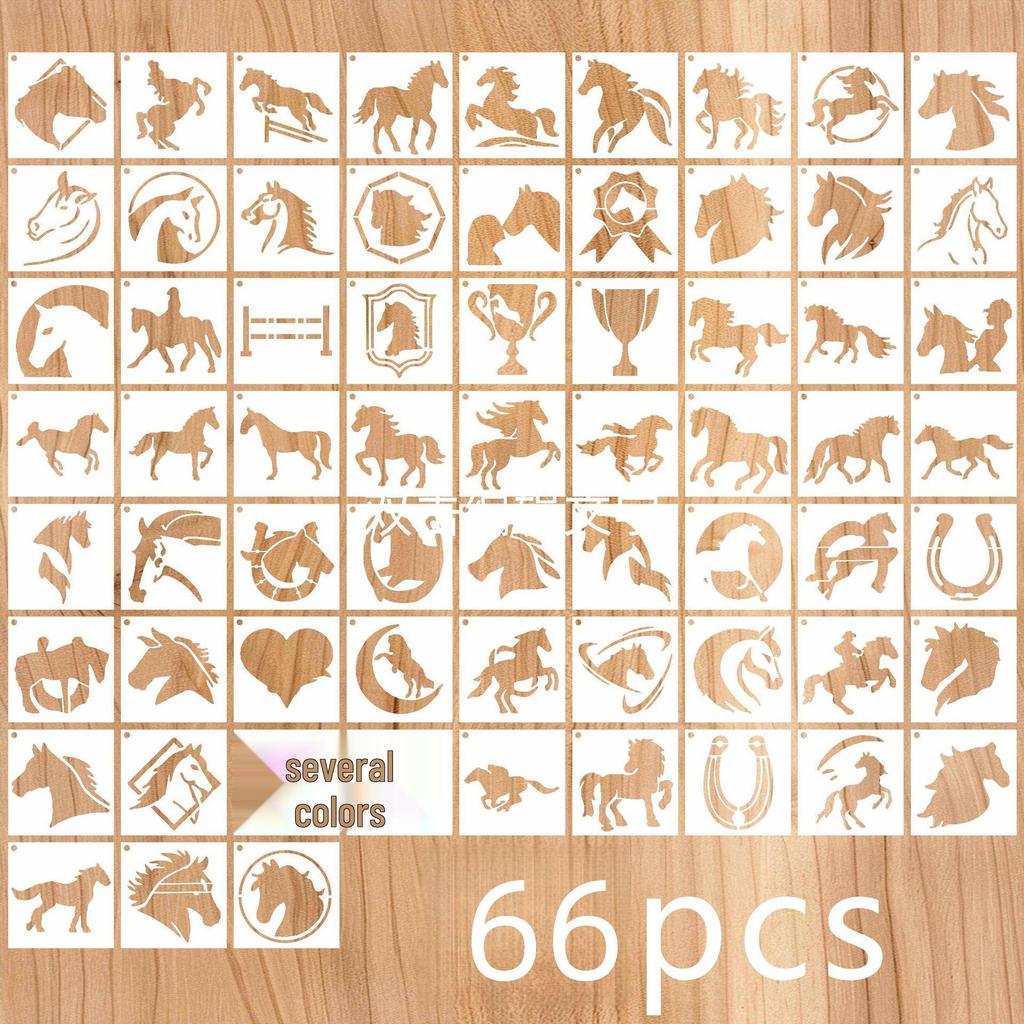 66-Piece Reusable Horse Pattern Painting Stencils for DIY Crafting On Wood, Walls, Stone, and Canvas