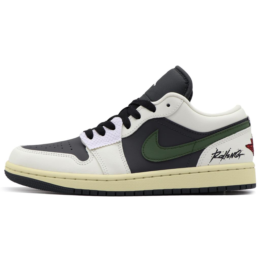 Jordan Air Jordan 1 Low Top Vintage Basketball Shoes Unisex Black White Green DC0774-001(Team57-)