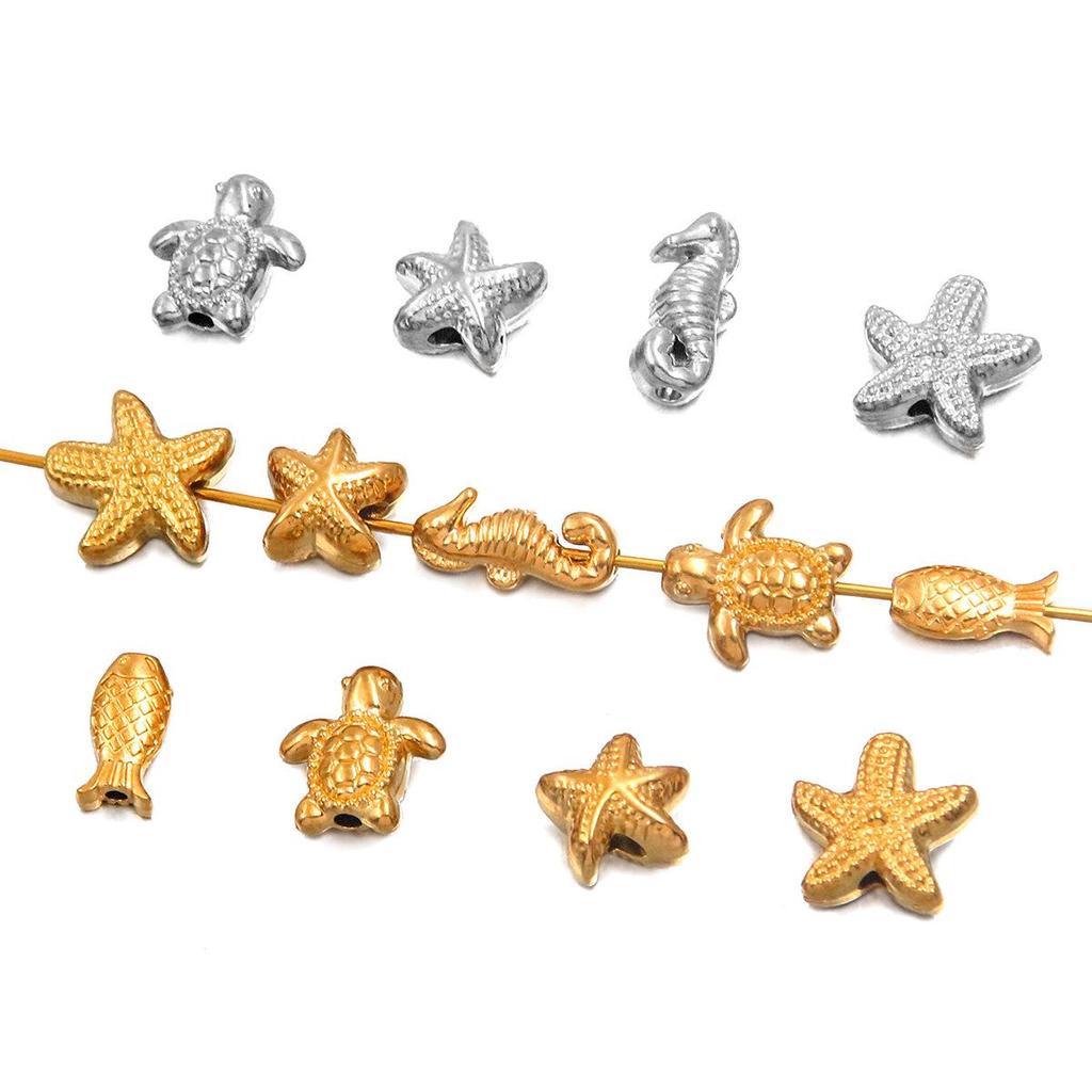 Retro Ocean-Themed Stainless Steel Beaded Pendants: Starfish, Seahorse, Sea Turtle for DIY Bracelets & Necklaces