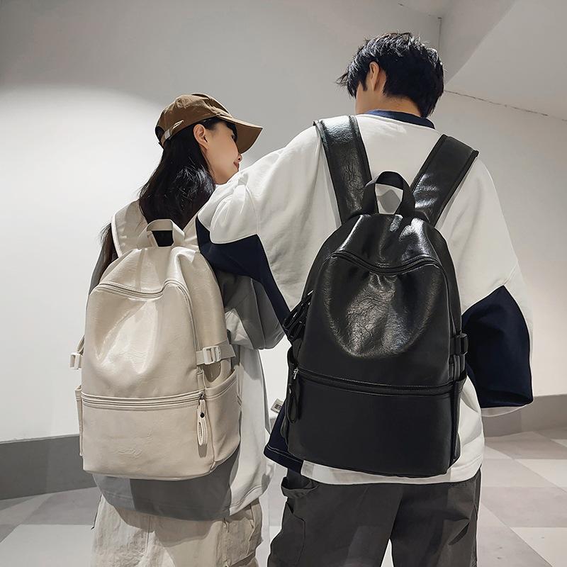 Retro PU Schoolbag Female College Student High School Junior High School Student Simple Large Capacity Computer Backpack Male Commuter Backpack Tide