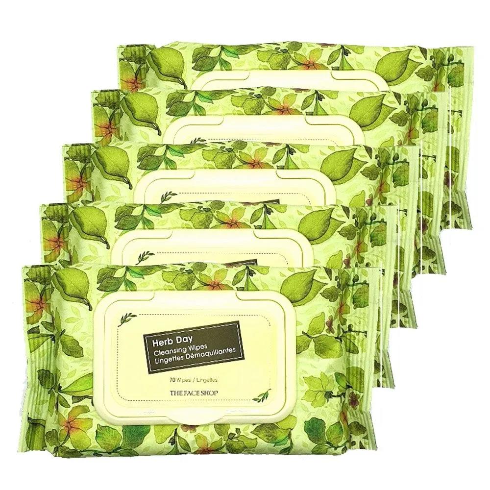1+1+1+1+1 The Face Shop Herb Day Cleansing Tissues 70 Sheets (5 Packs)