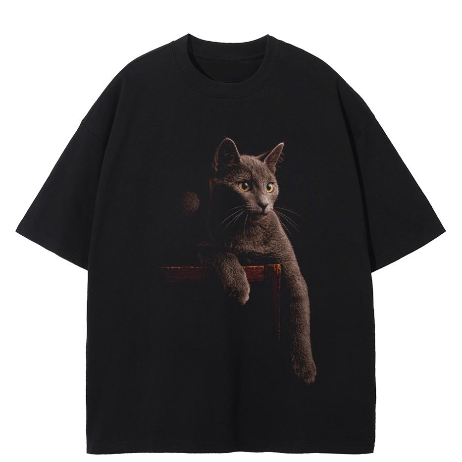 Streetwear Cats Graphic T-Shirt Cotton Tshirt Unisex Tops Tees Summer Short Sleeves T Shirt