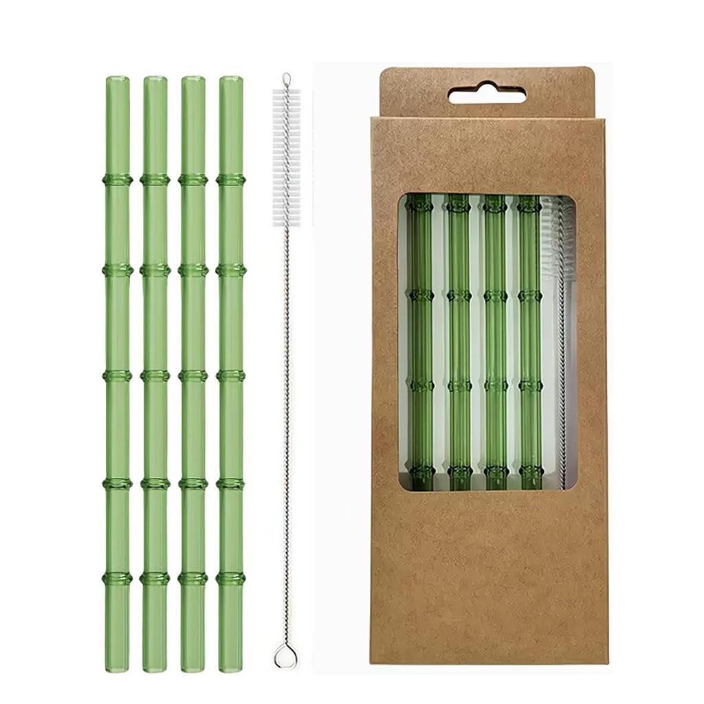 4-Pack Bamboo Reusable Glass Straws Set, Borosilicate Glass Drinking Straws with Brush for Smoothies, Coffee, Cocktails, Hot & Cold Drinks
