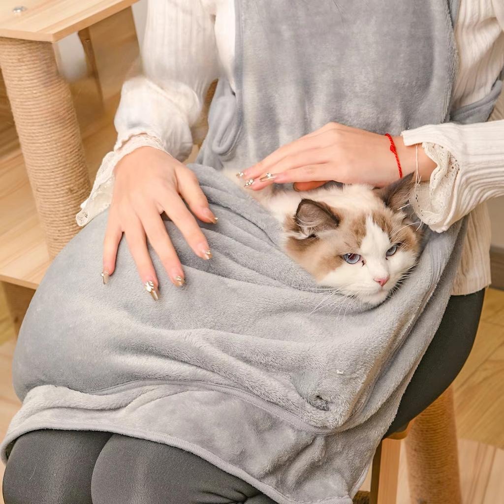 Winter Warm Plush Pet Holding Apron -Hair Carrier Pouch with Leg Holes