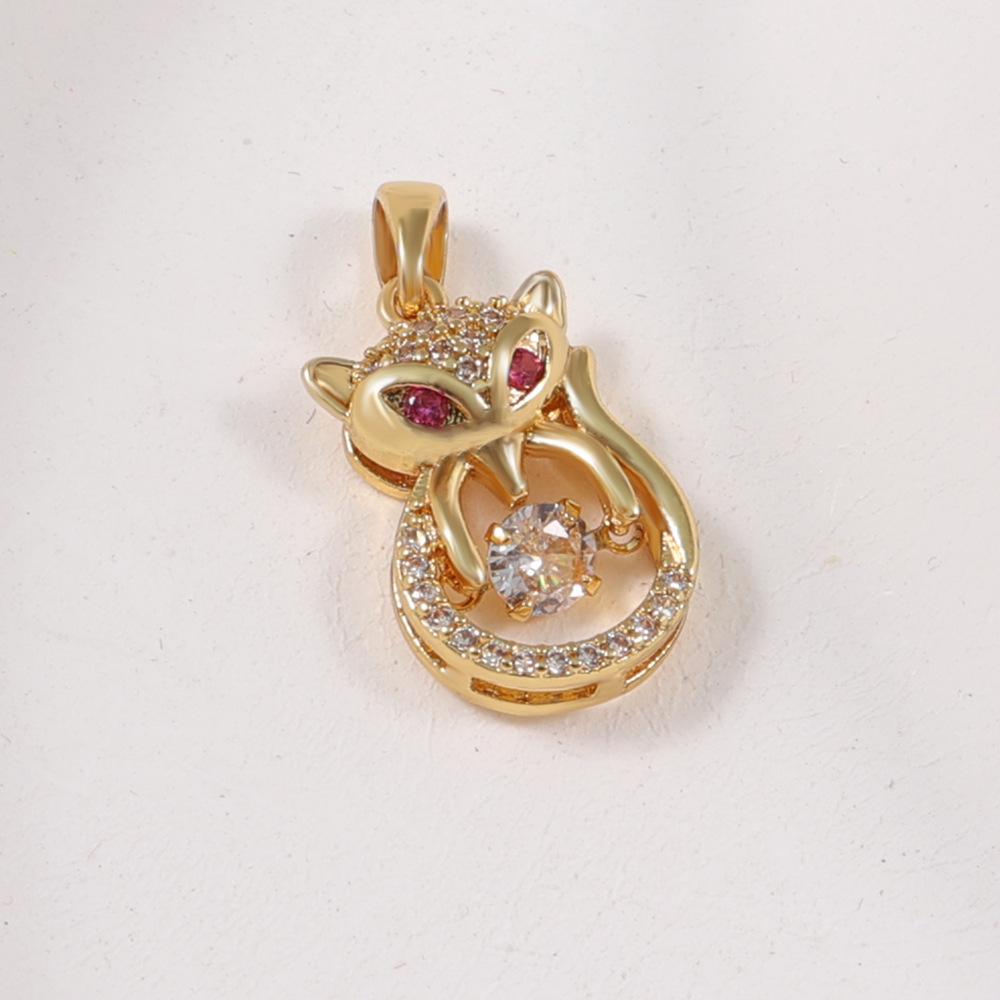Elegant Fox Pendant Necklace with Red Diamonds and Copper Electroplating