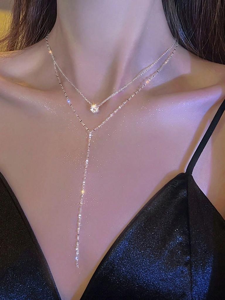 Pure Desire Ceiling~ Shining Zircon Light Luxury Collarbone Chain Necklace Female Tide Exquisite Temperament Versatile Neck Chain Jewelry
