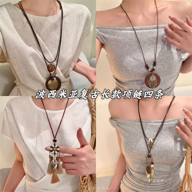 Holiday Style Resin Wood Bead Pendant Necklace, New Seaside Photo Collarbone Chain, Niche Personalized Item Decoration Women