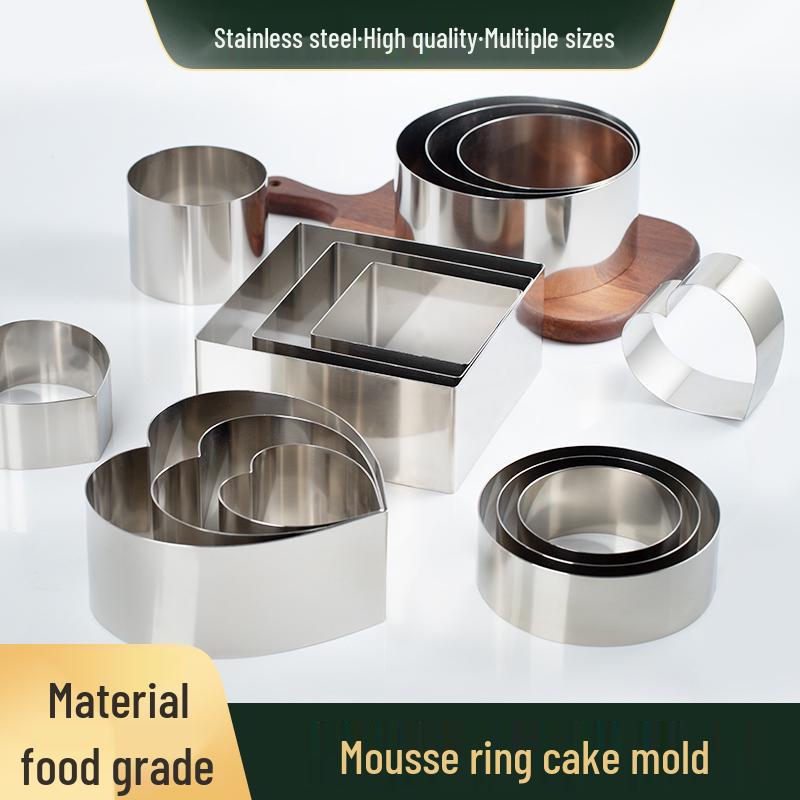 Round Square Heart-Shaped Mousse & Tower Ring, 4-10 Inch, Stainless Steel Baking Mold.
