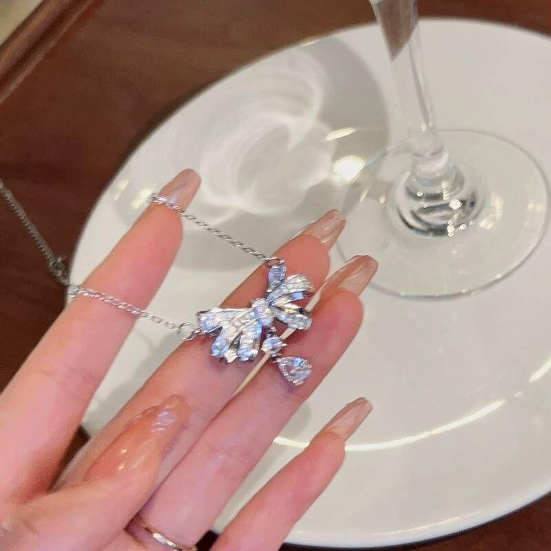 New Water Drop Bow Necklace Full of Diamonds Slightly Inlaid Niche Light Luxury Advanced Heavy Industry Collarbone Chain