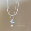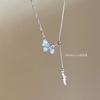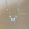 Ice Crystal Gradual Change Color Pearl Butterfly Fringed Necklace Women's Summer Exquisite High Sense Collarbone Chain Sweet Cool Babe Necklace