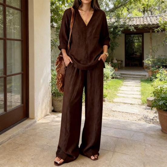 This casual two-piece women's outfit combines simplicity and comfort, crafted from breathable cotton and linen fabric ideal for spring, summer, and autumn wear. Designed with a loose fit, it flatters various body shapes while ensuring all-day comfort.