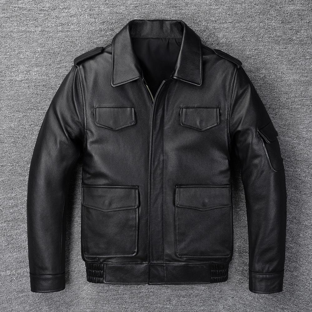 Hunting Leather Jacket Men Vintage Red Brown Black Genuine Cow Men'sLeather Jacket Pockets Real Skin Coat Autumn