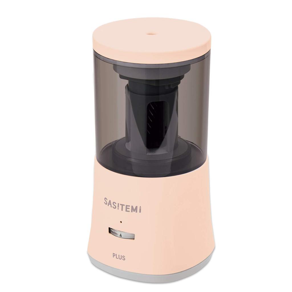 A cordless, rechargeable, super fully automatic pencil sharpener, ideal for studying in the living room. Its slim, stylish shape requires minimal space.