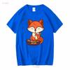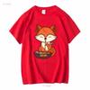 Fox Eating Ramen Kawaii T Shirt Japanese Cute Lovely Long or Short Sleeves Vintage Washed Unisex Casual Slightly Versatile