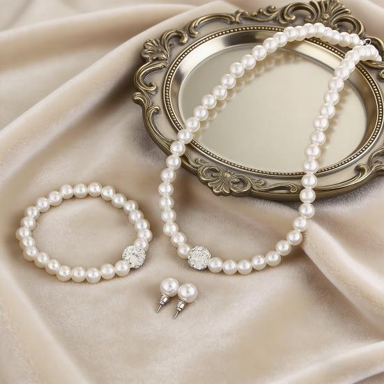 This elegant jewelry set features a necklace and earrings designed with unique white imitation pearls, offering a clean and sophisticated look that enhances any outfit.