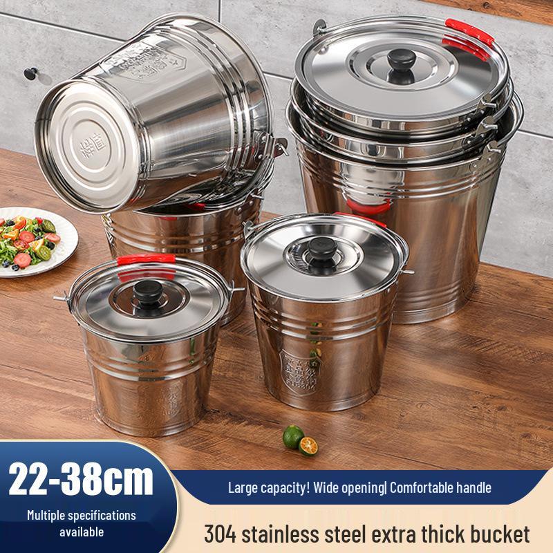 Extra Thick Stainless Steel Water Bucket with Lid for Home Storage