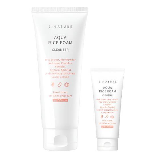 S.NATURE Aqua Rice Foam Cleanser is a low pH gentle facial cleanser designed to effectively remove impurities while maintaining the skin’s natural balance.