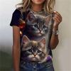 Fashion Women's T-shirt 3D Printed Kawaii Cat Pattern Short Sleeved Round Neck Top Summer Outdoor Casual Street Simple Clothing
