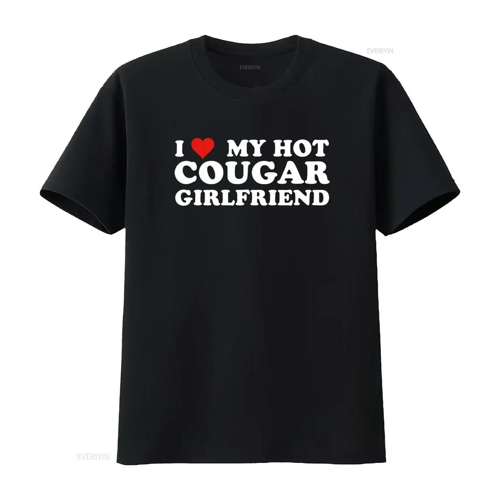 I Love My Hot Cougar Girlfriend Funny Saying T Shirt Black M Vintage Washed Unisex Streetwear Graphic Slightly Stylish