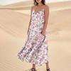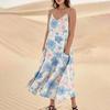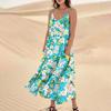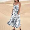 Women's Fashion Casual Floral Print Sleeveless Pocket Long Beach Dress