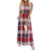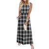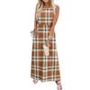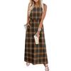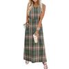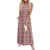 Ladies' plaid printed casual and fashionable waist cinched sleeveless dress