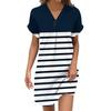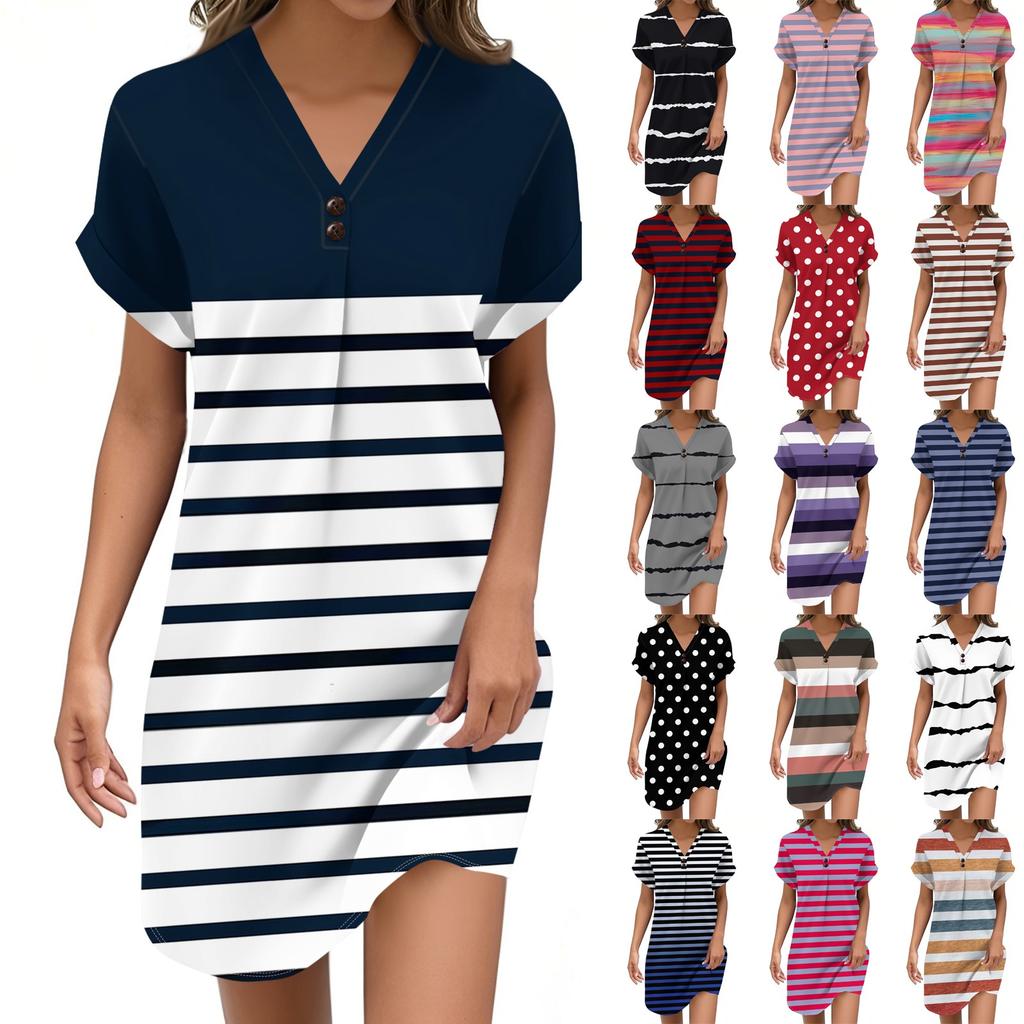 Women's Fashion V-neck Striped, Polka Dot Print Pull-head Casual Button Dress