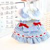 Dog Clothes Autumn and Winter Thick Princess Skirt Striped Fresh Sailor Cotton Coat Small Dog Pet Supplies