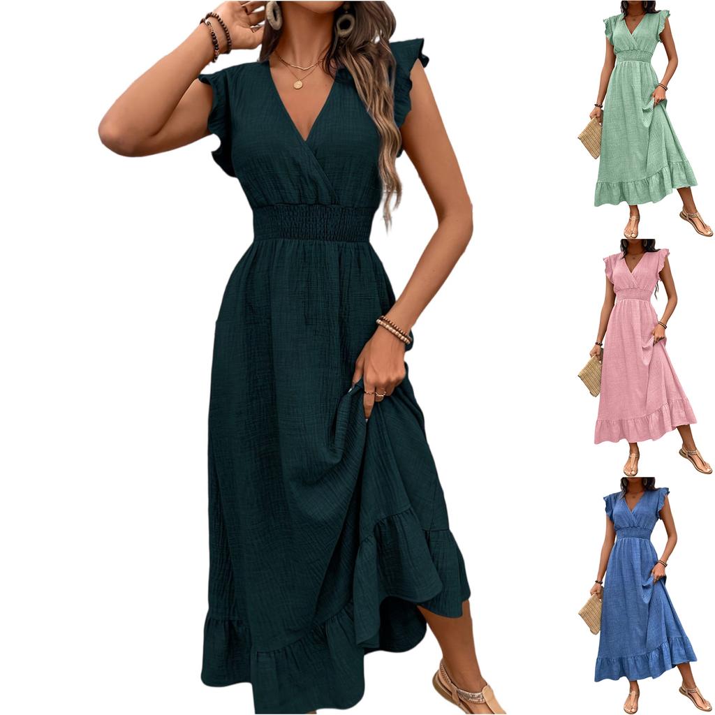 Features: ,: This dress is made of high-quality fabric, comfortable and breathable, with no stretch, providing a loose and flowing fit. You may want to choose one , up. The fabric is lightweight and breathable. If you don't like it being see-through, you can wear underneath. Design: The V- neck design better showcases your neckline. Matching: This dress will become a versatile staple in your wardrobe. Pair it with heels/hats/sunglasses and a long necklace for a stylish look that will earn you many compliments. Occasion: This dress is suitable for various occasions, such as parties, vacations, work, dates, and school. This dress can be given as a gift to your wife, friends, classmates, mother, or sisters; they will surely love it. Of course, you can also yourself – you'll love it too! : This dress is hand washable, machine washable, and dry cleanable. Please hang to dry. Ironing before wearing is recommended.