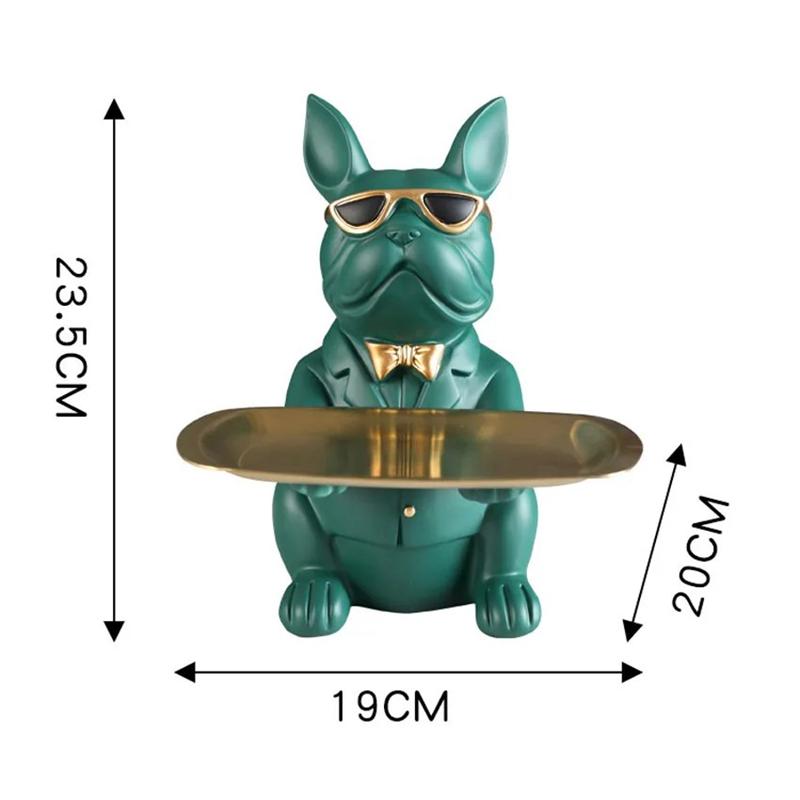 Nordic French Bulldog Sculpture Dog Figurine Statue Key Jewelry Storage Table Decoration Gift With Plate Glasses Ornaments