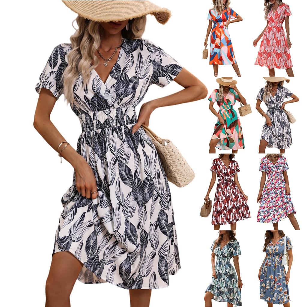 Women's Dresses Casual Small Floral Printed V-Neck Short Sleeve Dresses