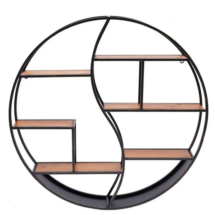 Round Wall Shelf - Divit - 6 Shelves - Diameter 68 Cm - Metal and Wood Structure