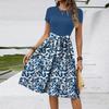 Women's Fashionable Retro Patterned Printing Color Blocked Belt Casual Dress