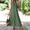 Women's Fashion V-Neck Short Sleeve Color Zipper Casual Vacation Long Dress Cotton Linen Dresses